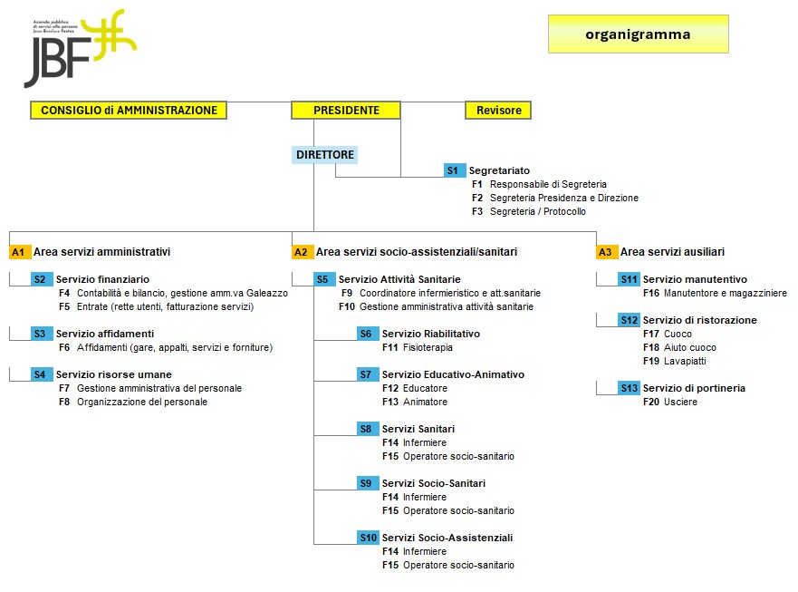 L’organigramma aziendale è una rappresentazione grafica che consente sia la visualizzazione chiara ed immediata della struttura organizzativa aziendale, che la comprensione dei ruoli, dei legami funzionali e gerarchici tra le persone, della suddivisione dei compiti e le responsabilità di chi lavora in Azienda.